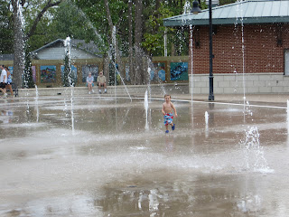 My friend Courtney's son Max turned 3 on August 21st, and she had his birthday party this past weekend at a local splash park. We had never been to one, but Wesley had so much fun! He was a little hesitant when we first got there, but once he warmed up he was running all over the place.